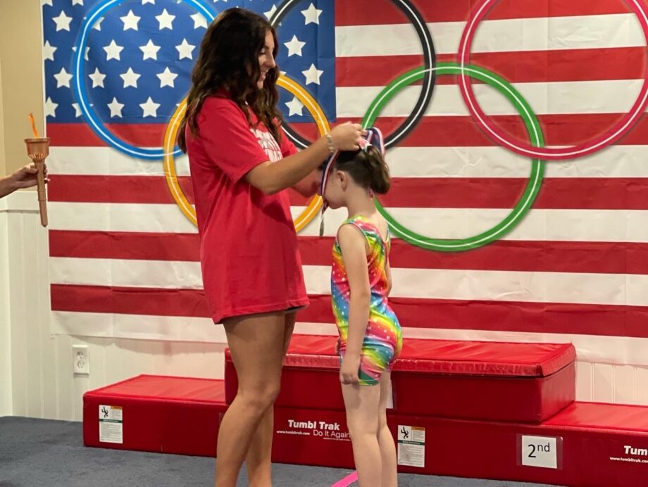 Olympics Day! At the end of our camp, we will perform our routines for our families! Each child earns their very own nice gold medal. The top three will also earn place ribbons. Everyone gets popsicles and we have the yard and gym decorated for our event. The kids look forward to this all year long!